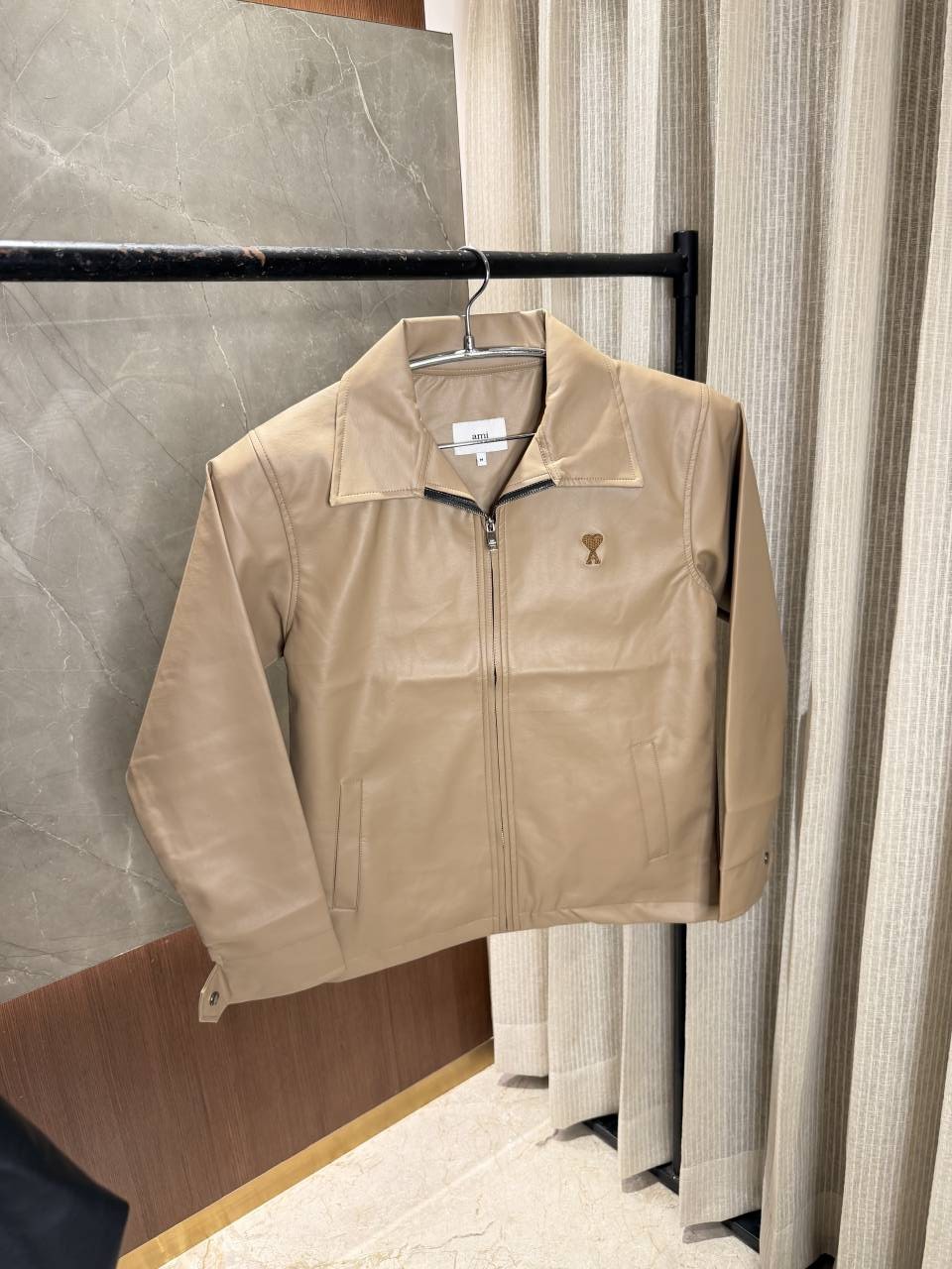 • Ami paris Camel Leather Jacket Very Premium Quality
