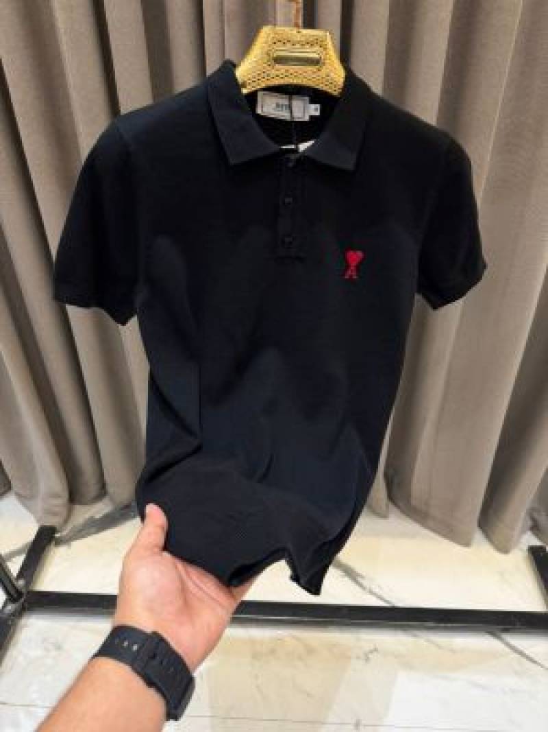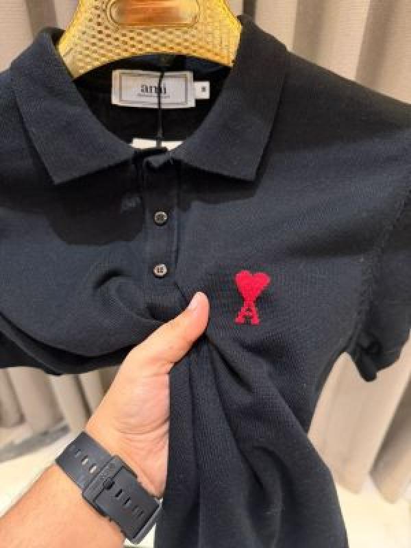 Ami Paris Chest Logo Polo T-shirt Navy Blue