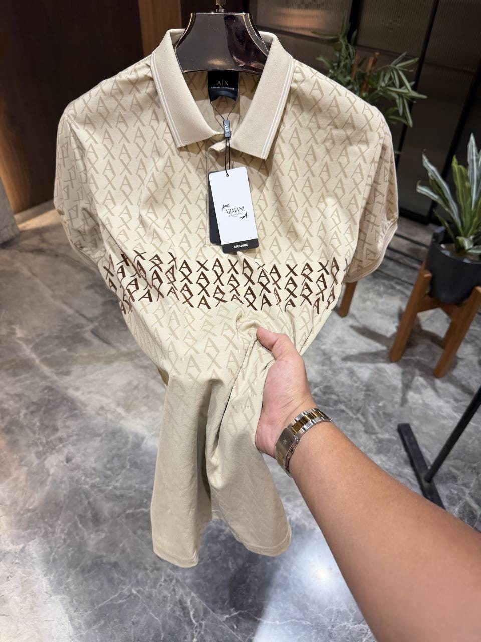 Arman_i Exchange Beige Velvet Print Polo tshirt with Box