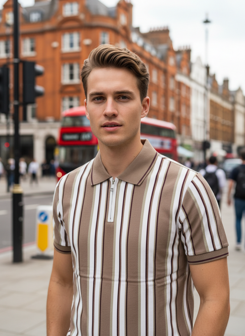 • CALVIN KLEI_N BROWN PREMIUM FABRIC ZIP WORK POLO