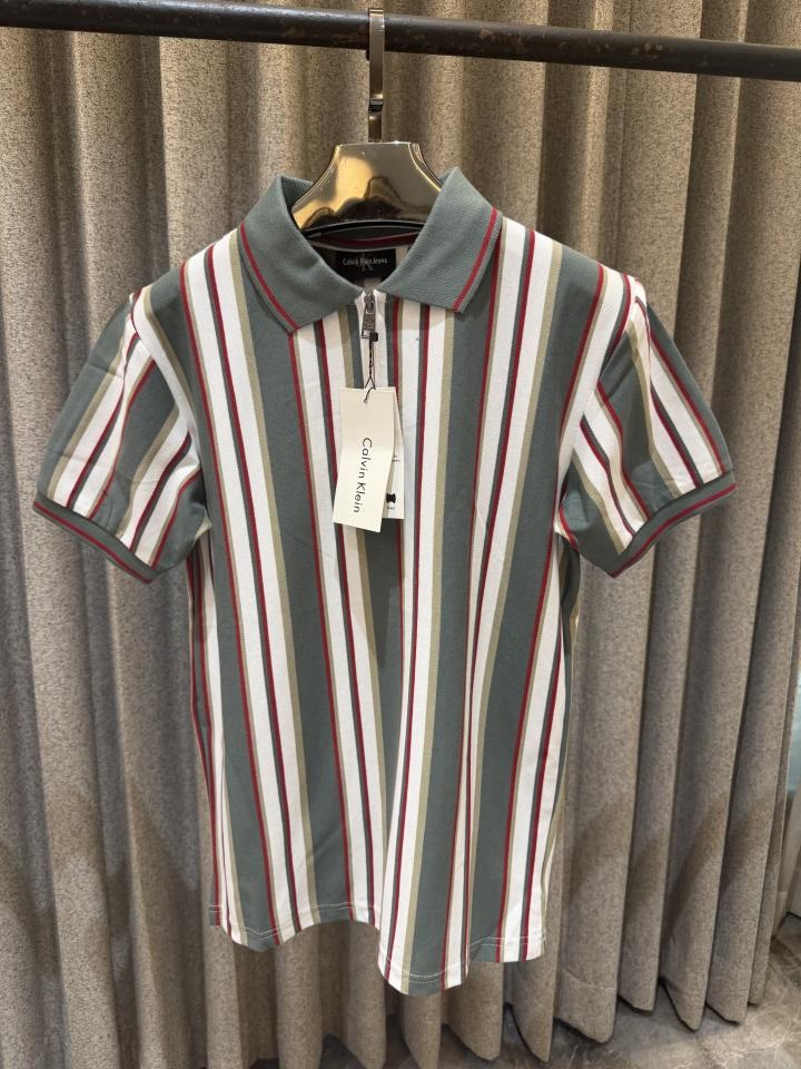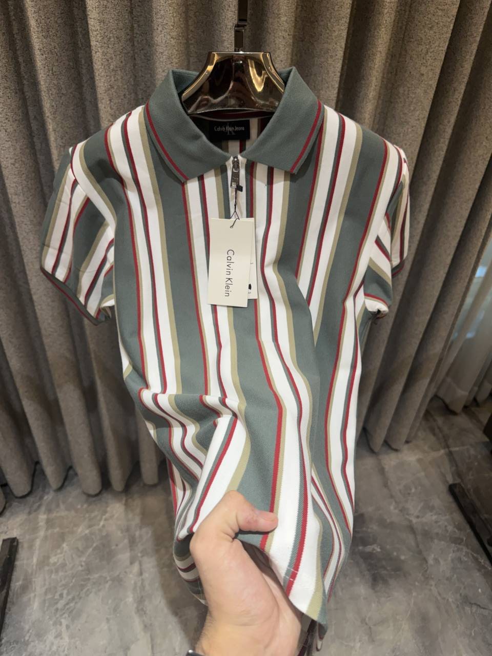 • CALVIN KLEI_N GREEN PREMIUM FABRIC ZIP WORK POLO