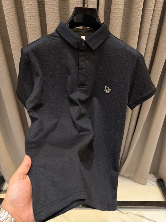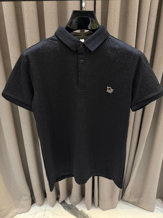 • Christian Dio_r Chest Logo Full Monogram Polo T-shirt Black