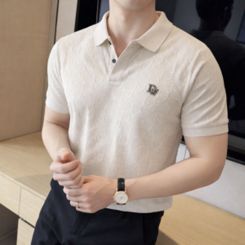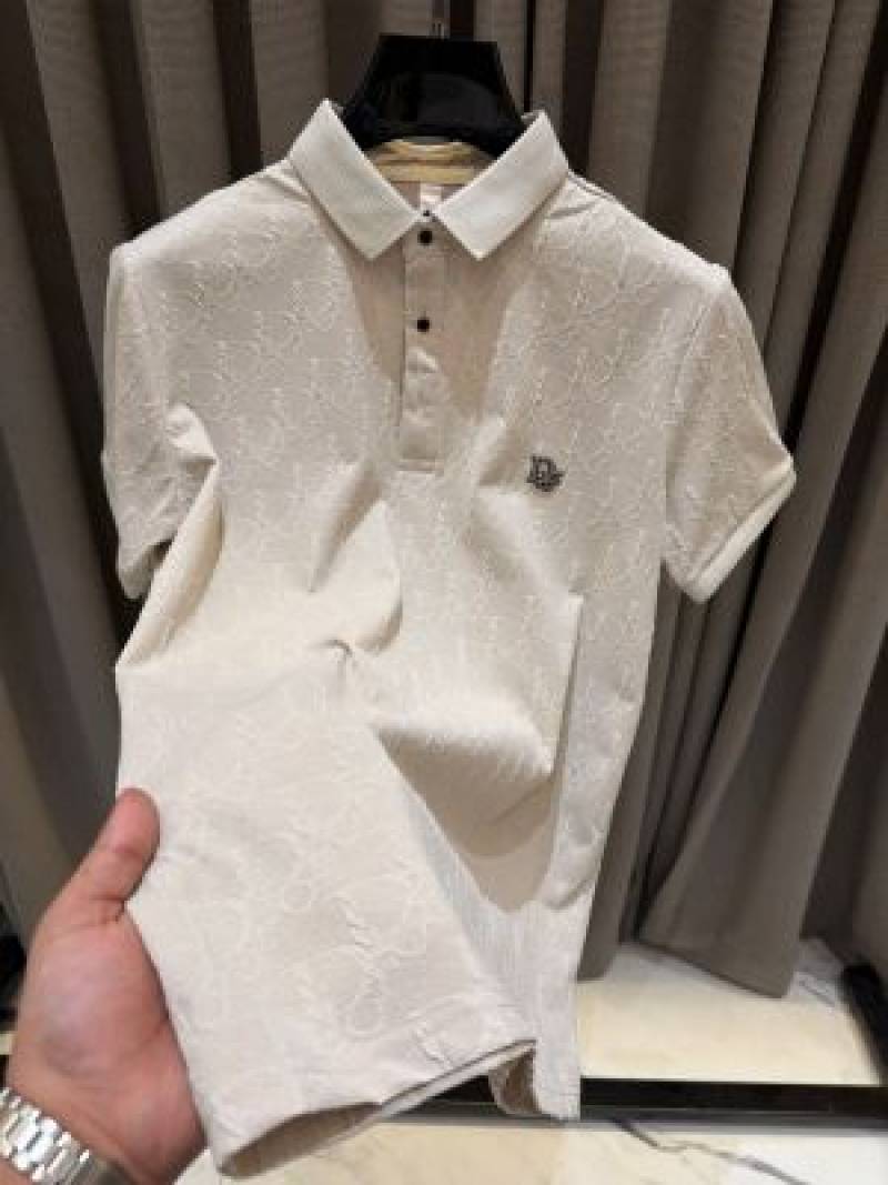 Christian Dio_r Chest Logo Full Monogram Polo T-shirt Coffee