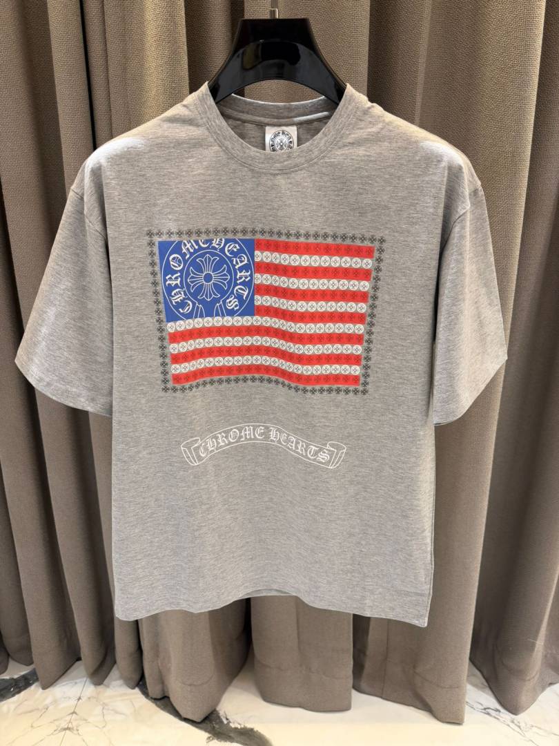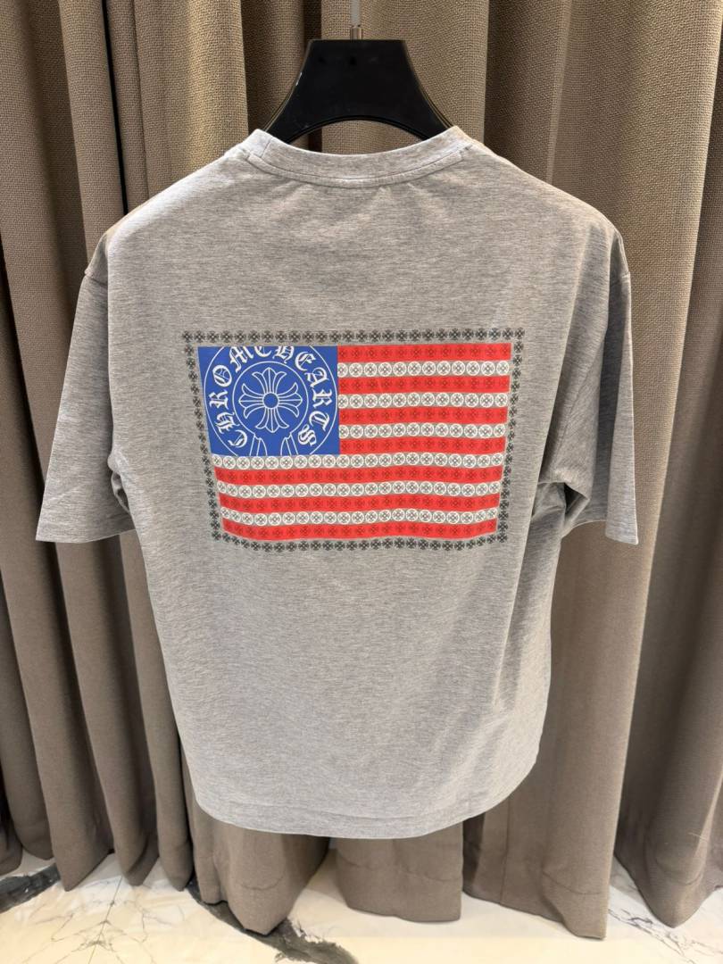 Chrome Heart Round Neck T-shirt USA Flag Grey