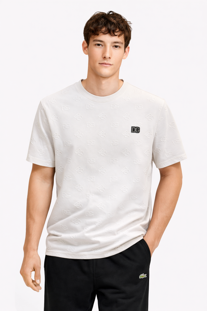 Dolce & Gabban_a White Imported Embossed Monogram Tshirt