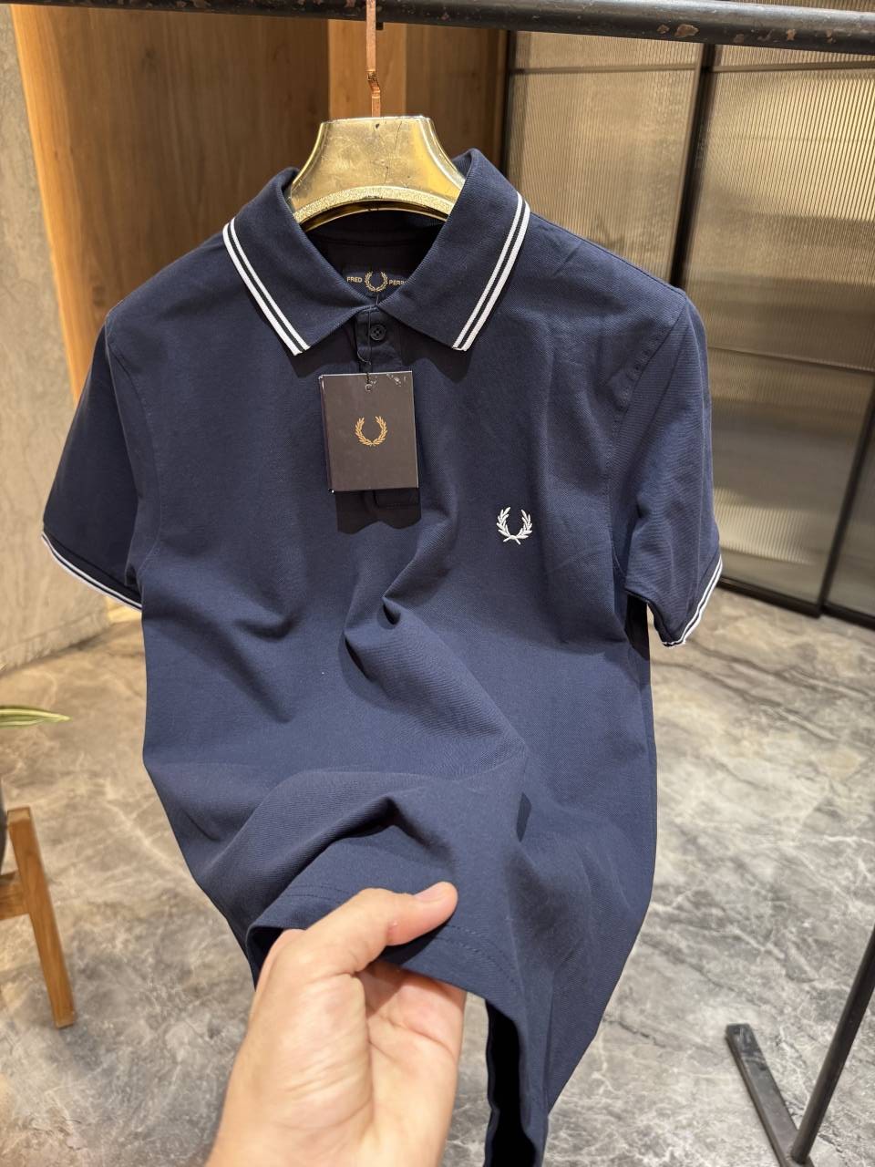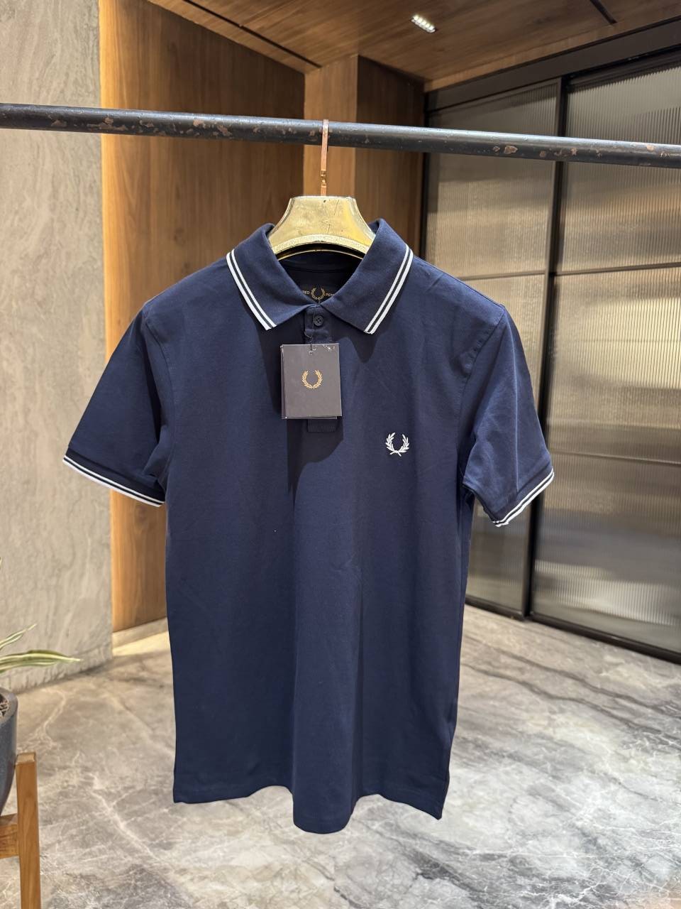 • FRED PERRY NAVY BLUE KNITTED PREMIUM POLO TSHIRT STORE ARTICLE