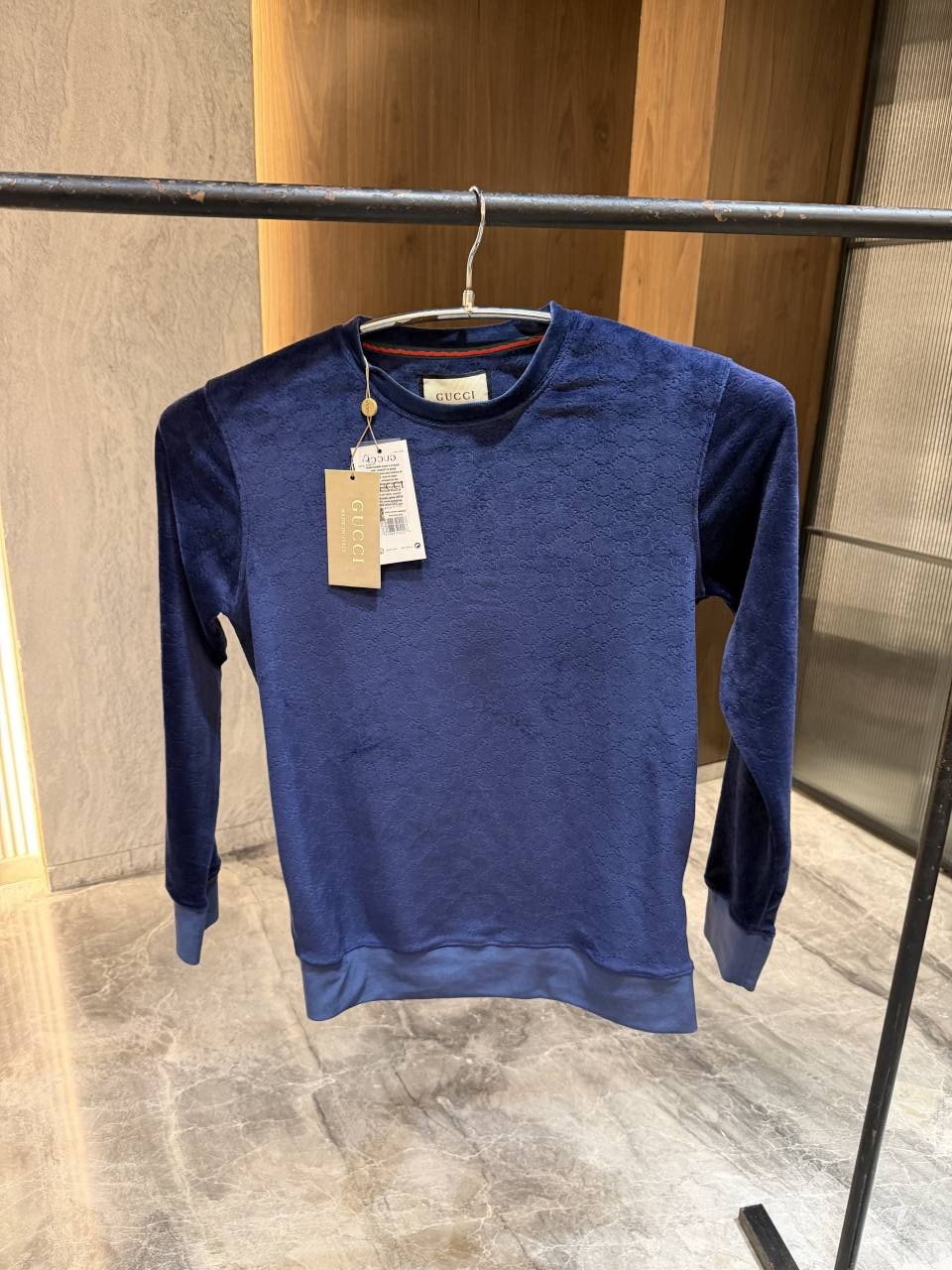 Gucc i Blue Pure Velvet Monogram Tshirt