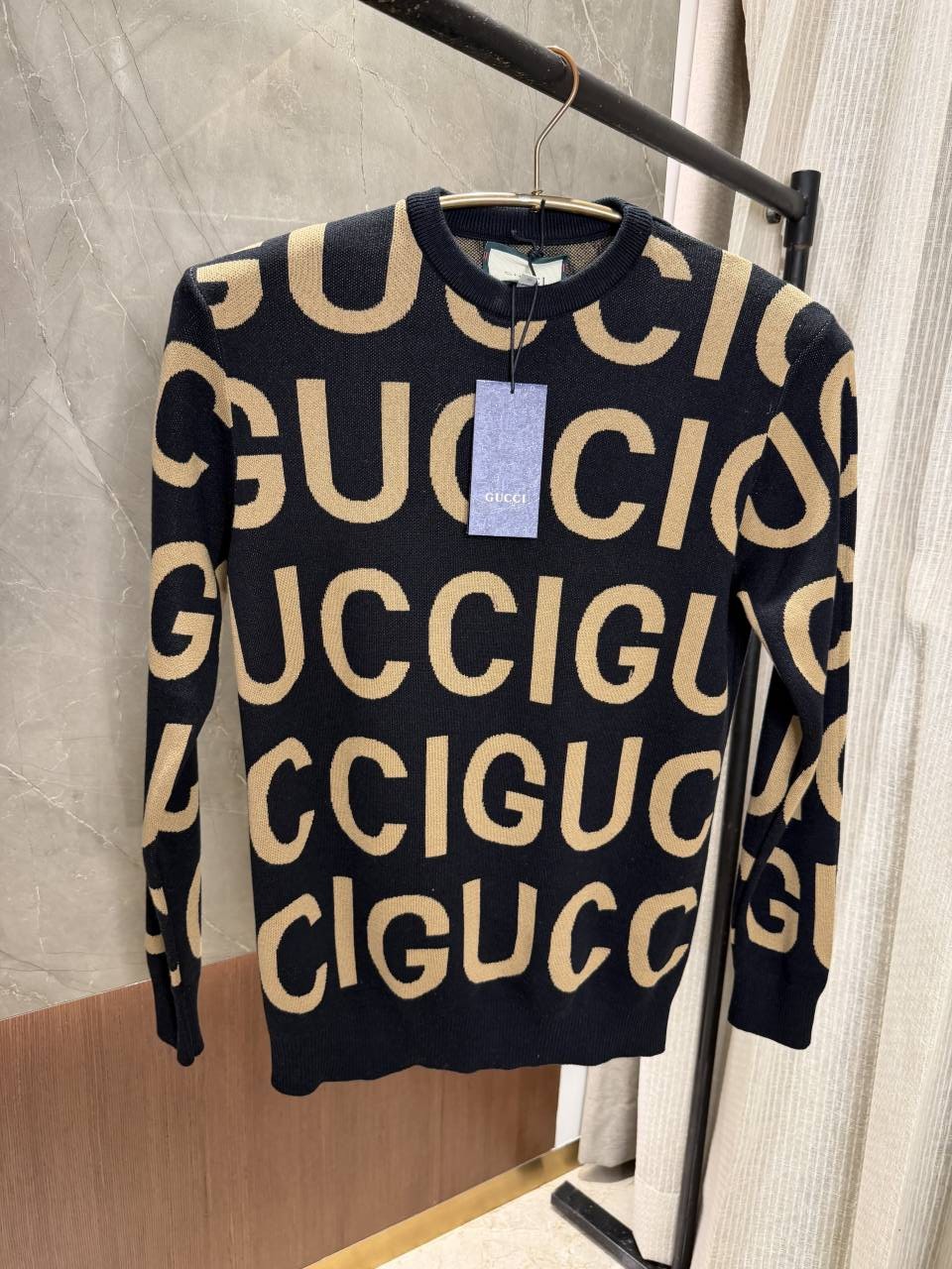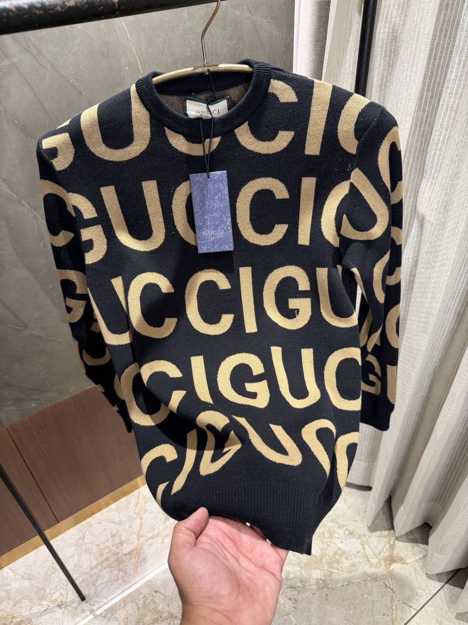 • Gucc i Light Black Knitted Pullover Full Sleeves Knitted Lycra