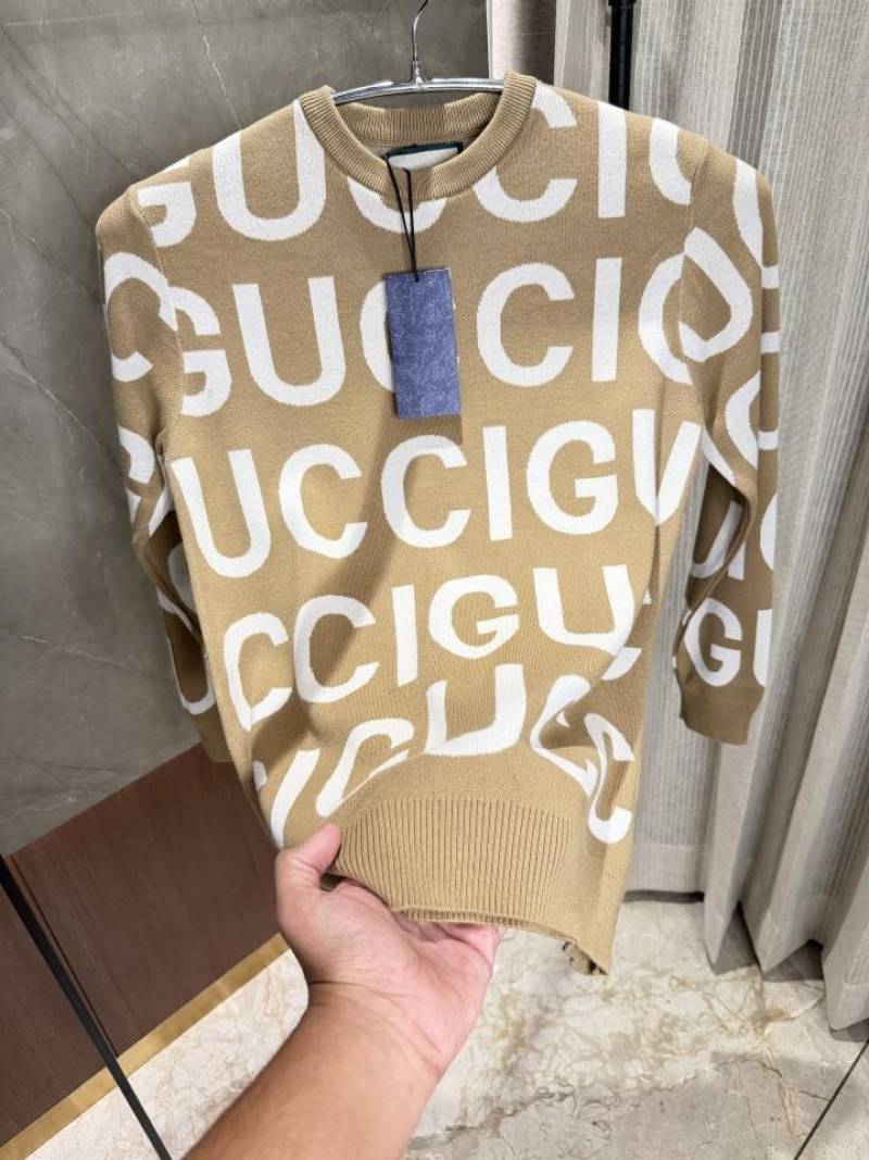 • Gucc i Light Brown Knitted Pullover Full Sleeves Knitted Lycra