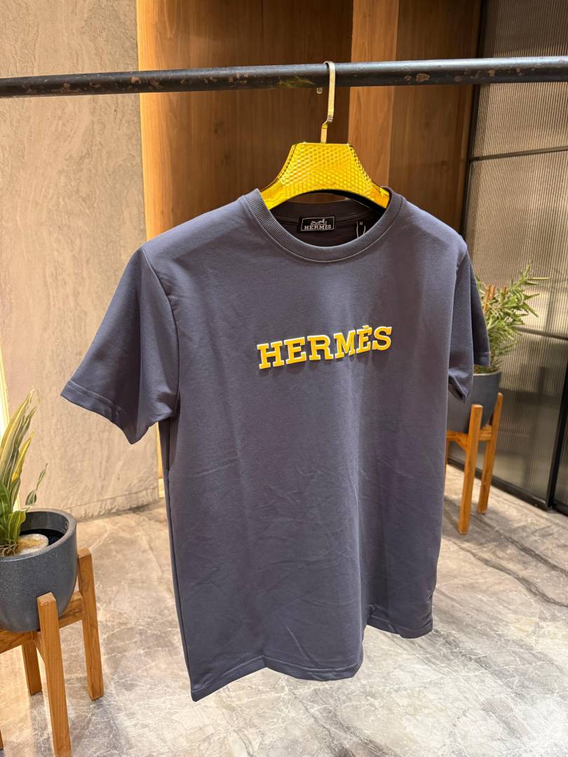 HERMES NAVY BLUE YELLOW PRINTED ROUND NECK OVERSIZED TSHIRT STORE ARTICLE