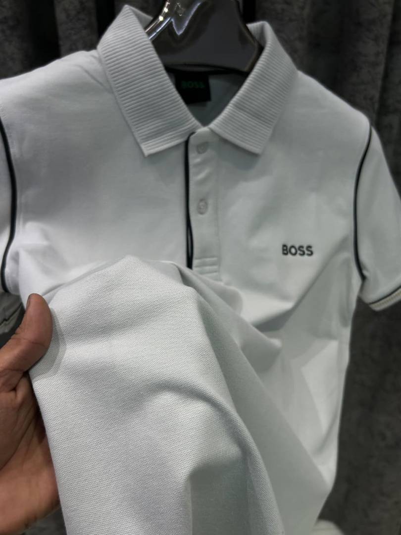 • Hugo bos s Offwhite Imported Heavy cotton lycra polo with Box