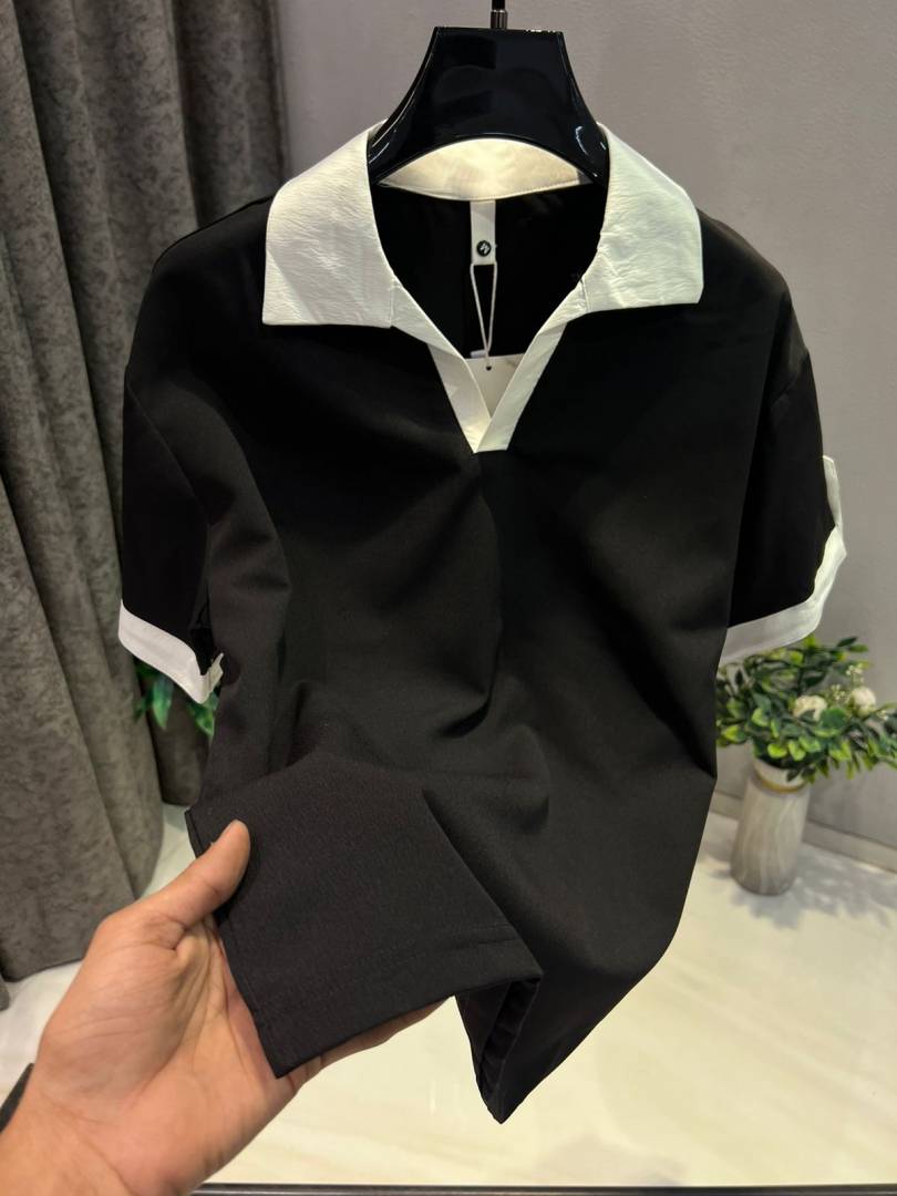 • KOREAN IMPORTED HIGH DEMAND ARTICLE POLO T-SHIRT BLACK WHITE