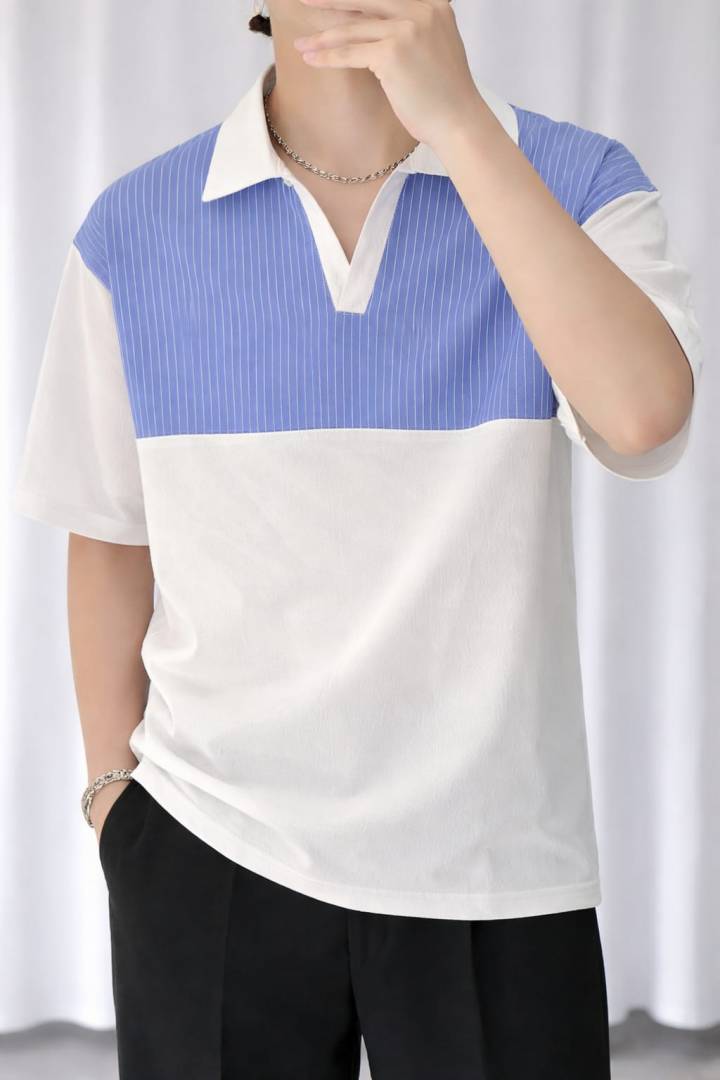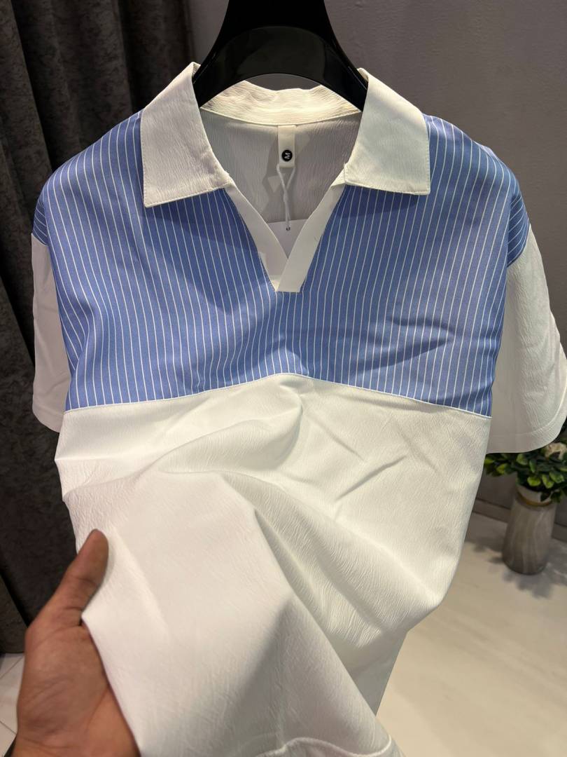 KOREAN IMPORTED HIGH DEMAND ARTICLE POLO T-SHIRT WHITE AND SKY BLUE