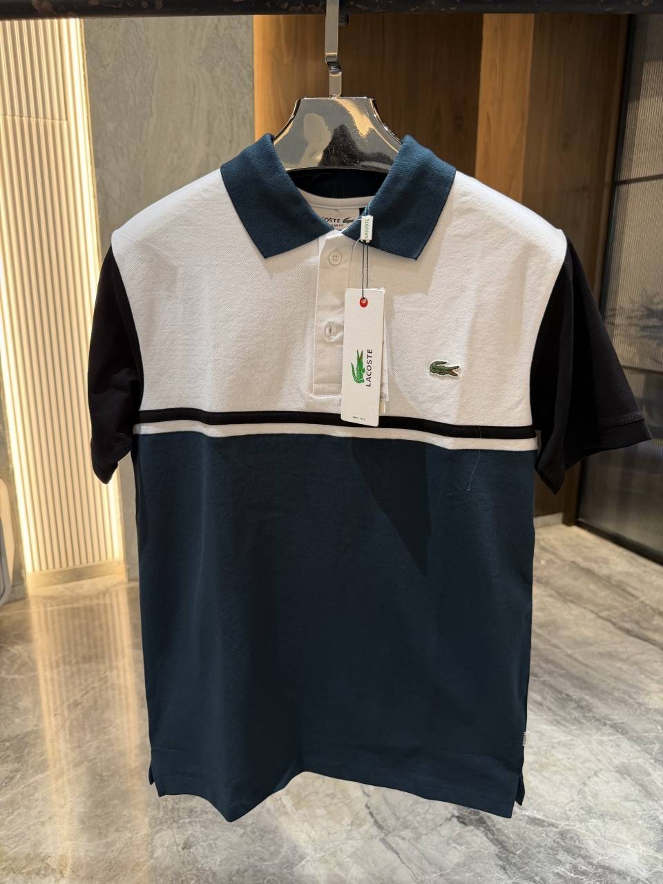 • LACOST_E BLUE WHITE RED PREMIUM IMPORTED POLO