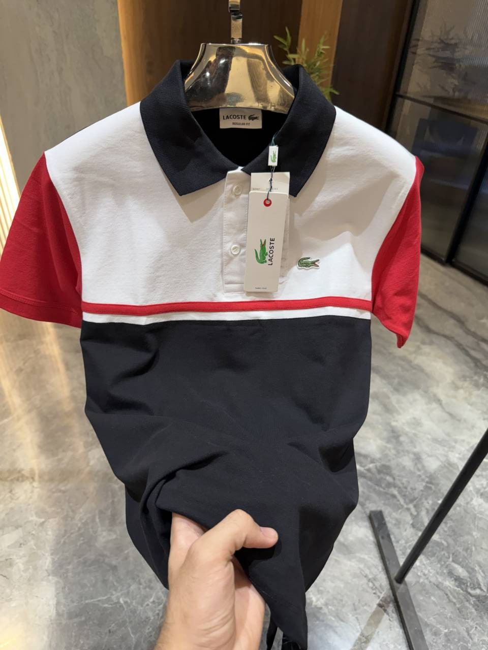 • LACOST_E BLUE WHITE RED PREMIUM IMPORTED POLO