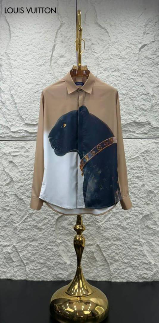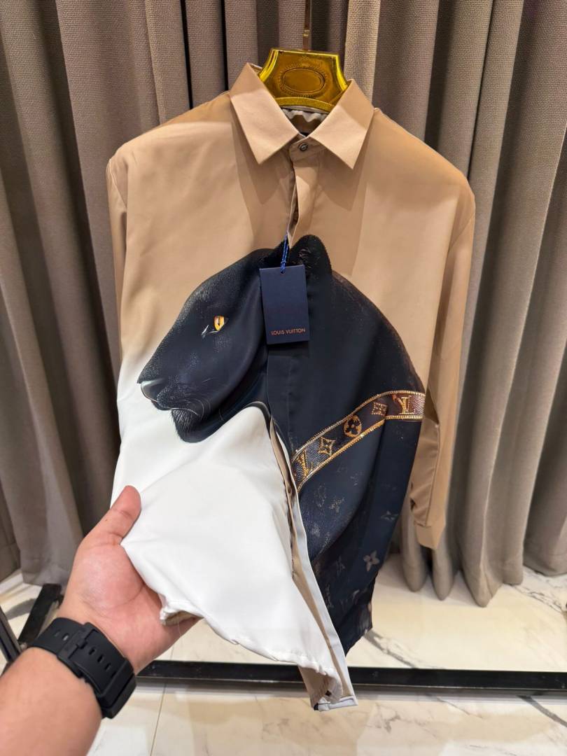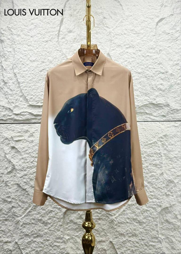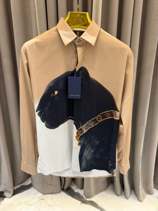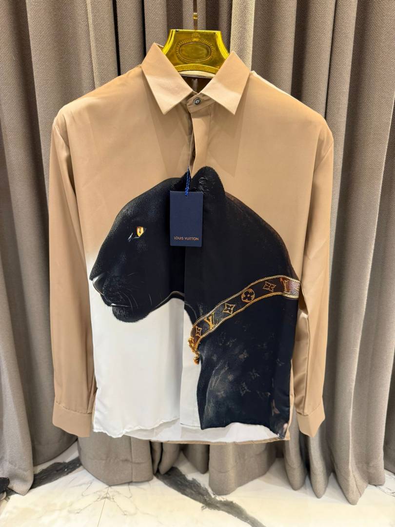 Louis_Vuitton Panther Print Full Sleeves Shirt Coffee