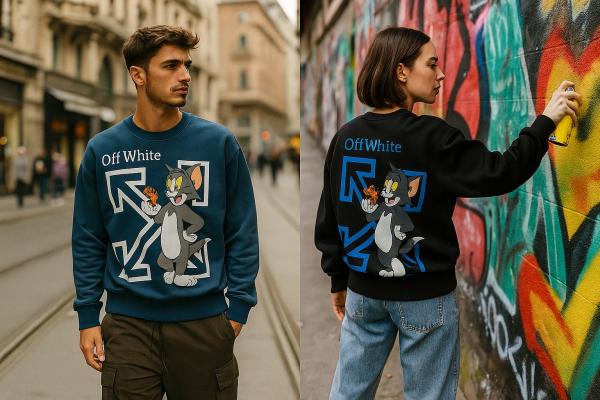 Offwhite BLack Sweatshirt Tom and jerry edition