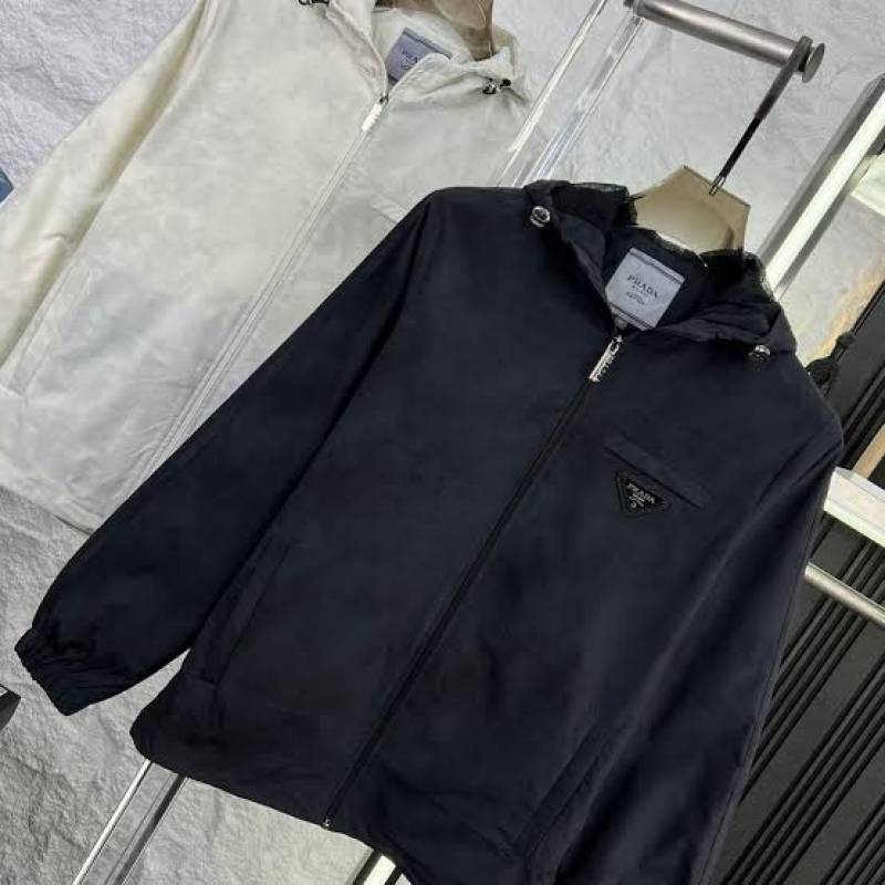 Prad_a Black Zipper Jacket faded print with Metal logo