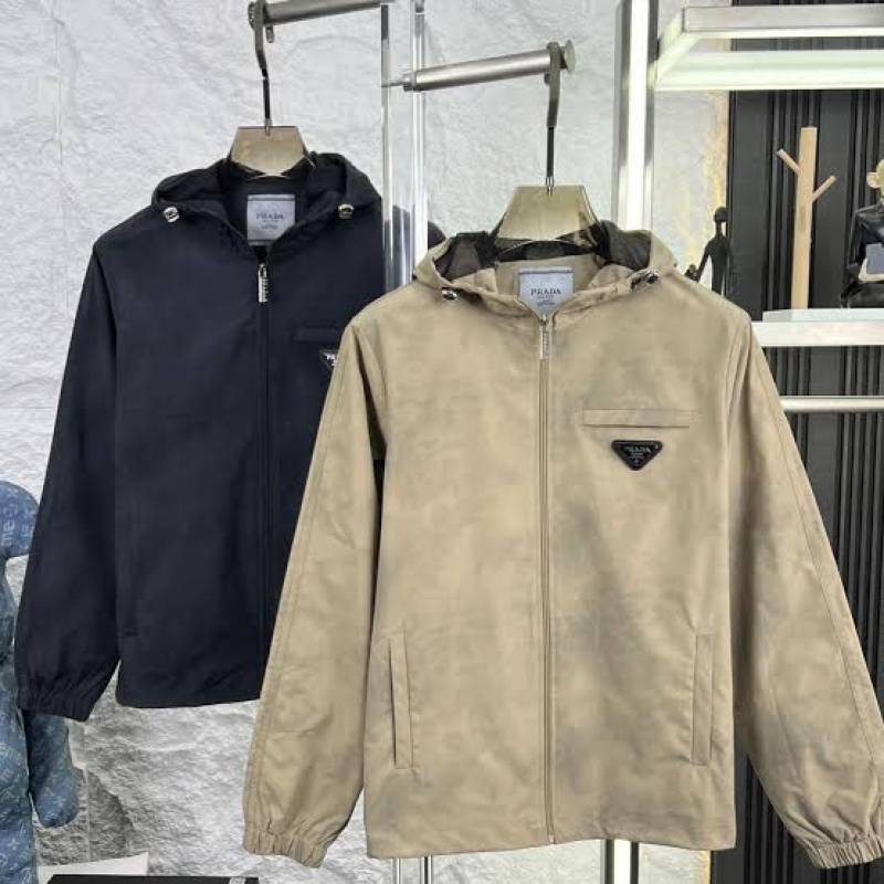 Prad_a Brown Zipper Jacket faded print with Metal logo