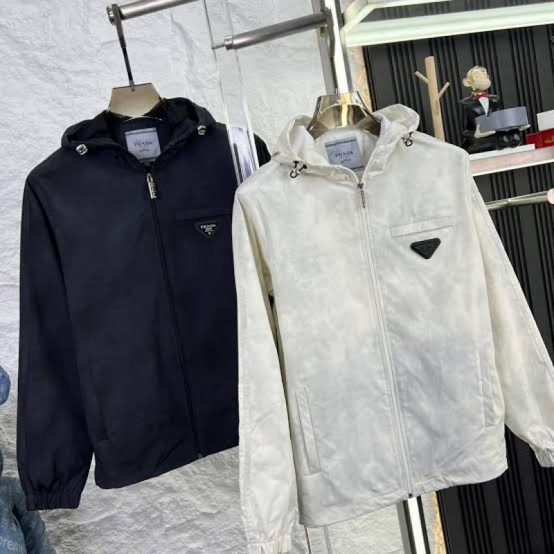 Prad_a White Zipper Jacket faded print with Metal logo