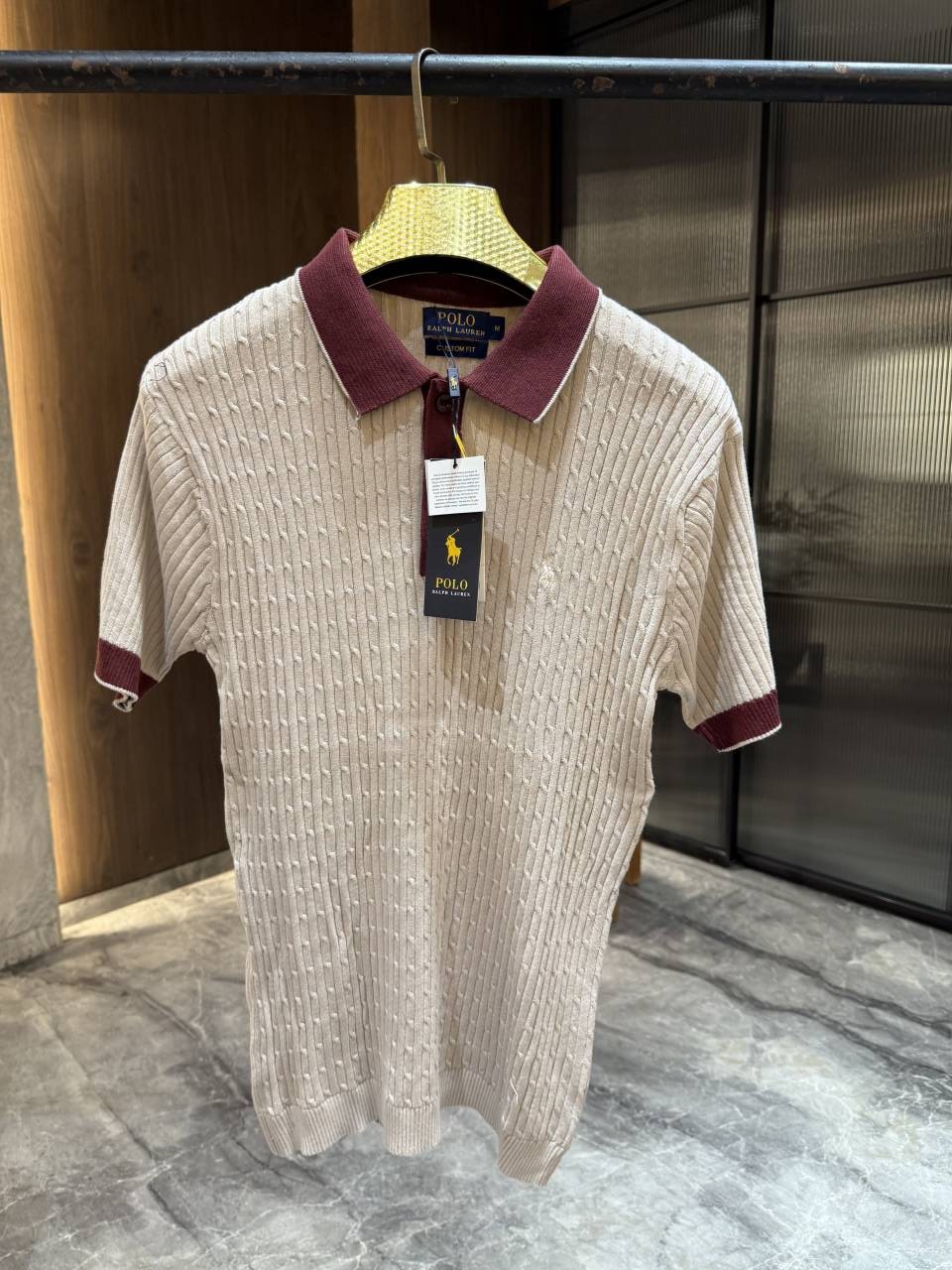 Ralp_h lauren Beige Maroon knitted woolen polo tshirt