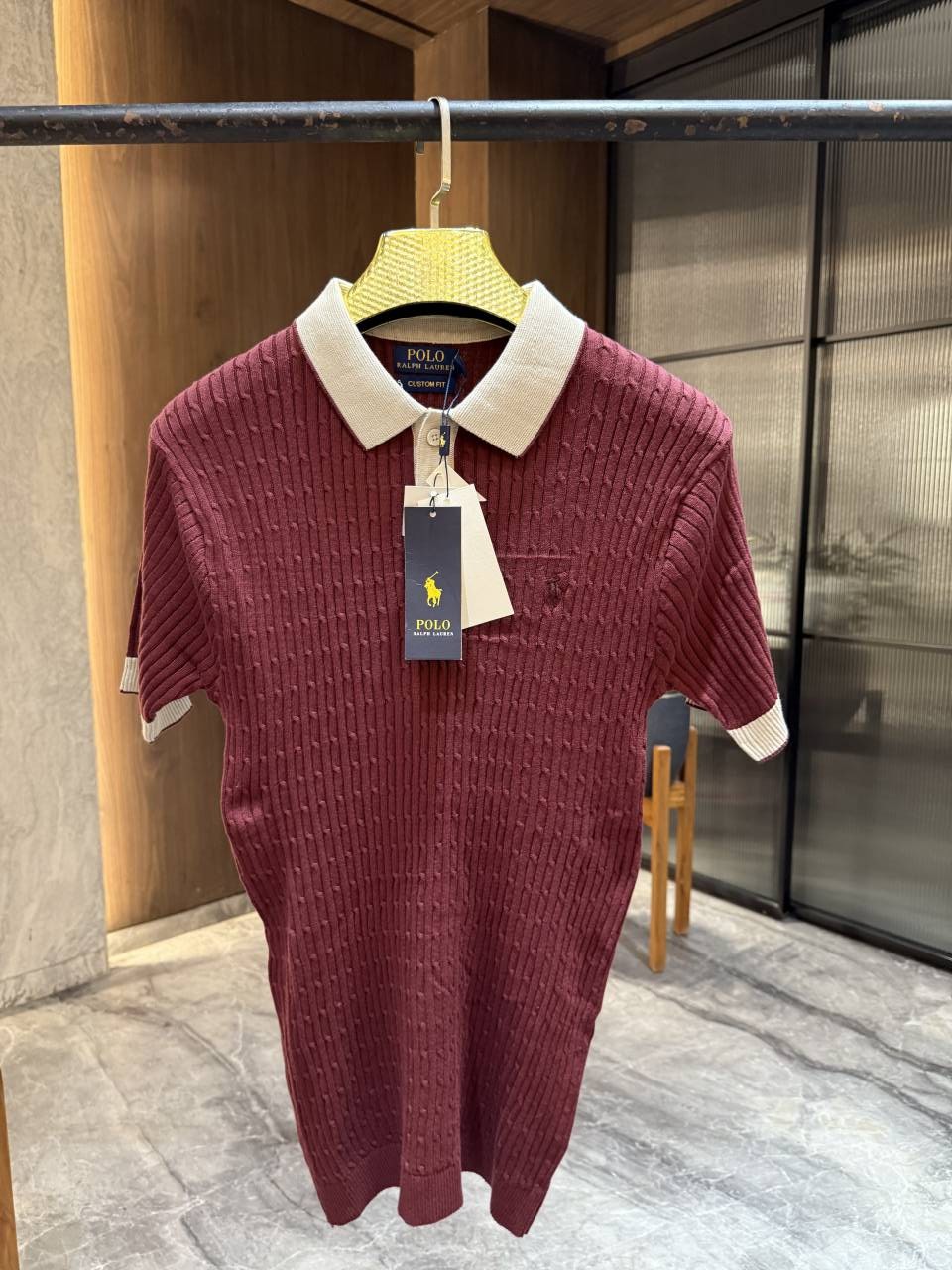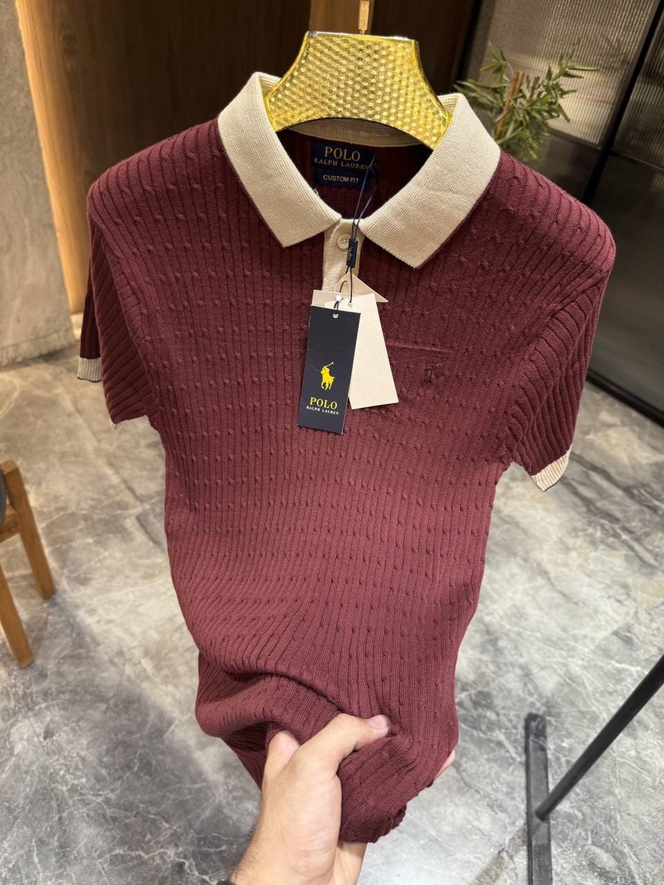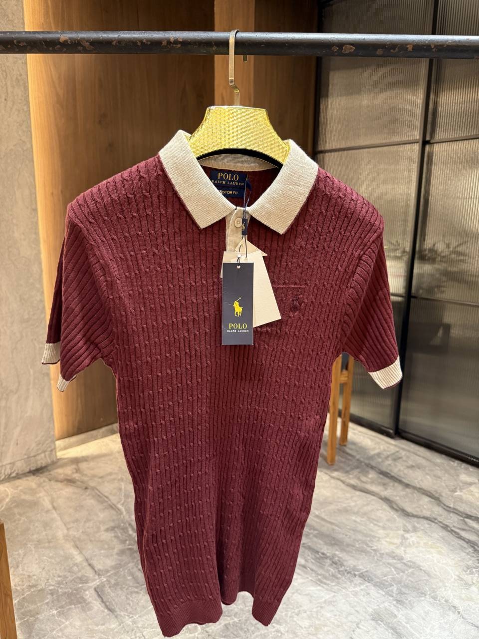 Ralp_h lauren Maroon Beige knitted woolen polo tshirt