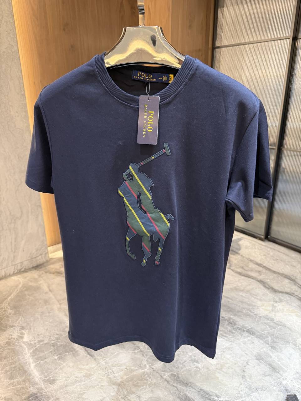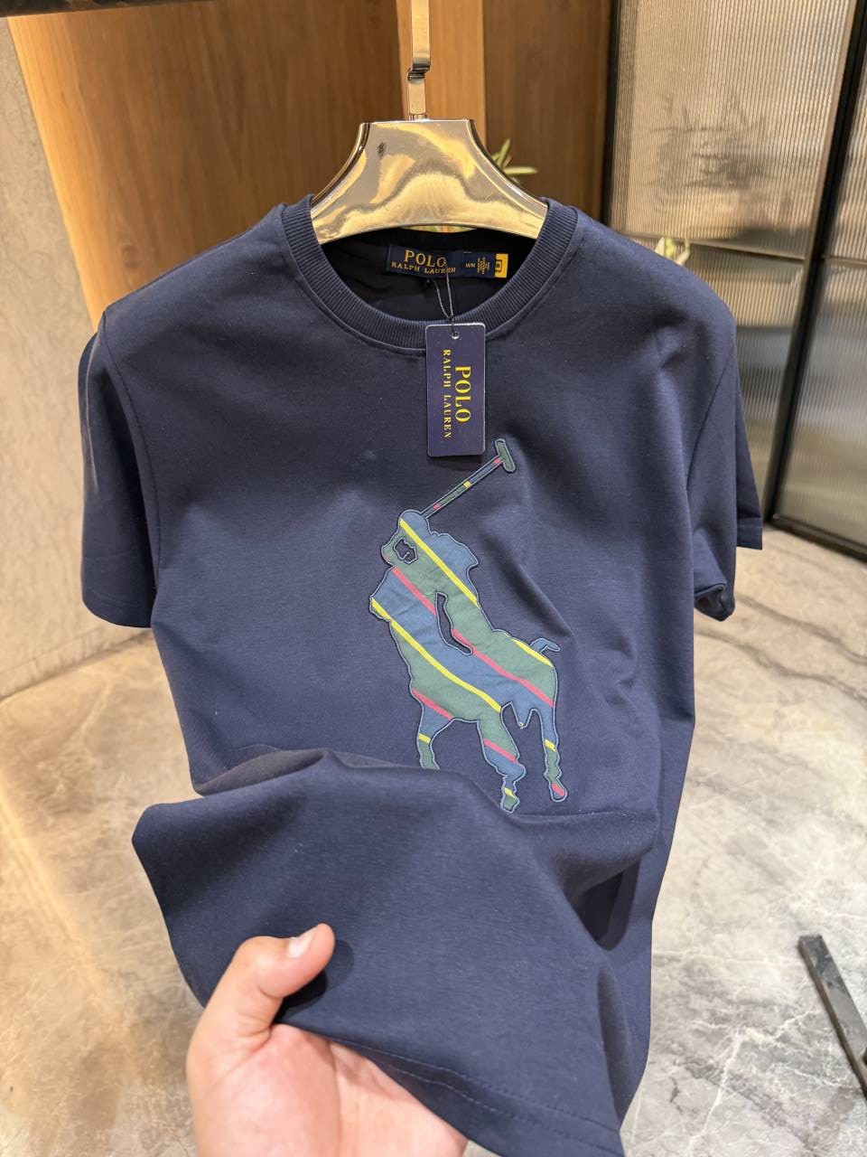 • RALP_H LAUREN NAVY BLUE EMBOSSED PREMIUM ROUND NECK TSHIRT STORE ARTICLE
