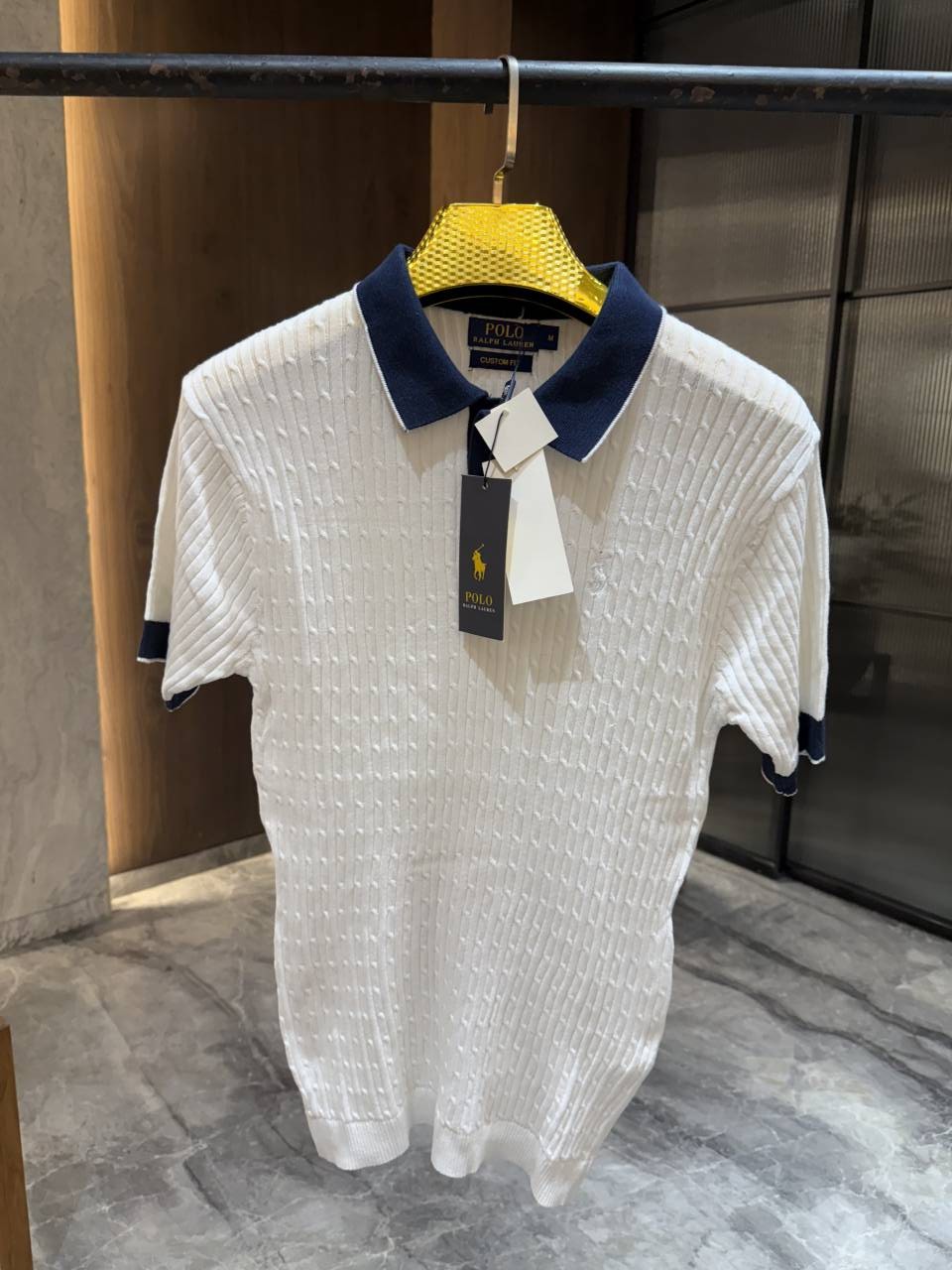 • Ralp_h lauren white Navy Blueknitted woolen polo tshirt