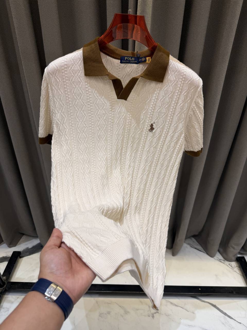 • Ralph Laure_n Cream Knitted Polo Tshirt
