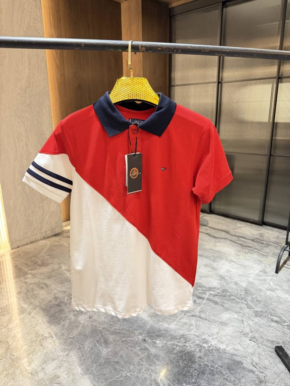 • Tommy Hilfigher Red Back Printed Polo Tshirt